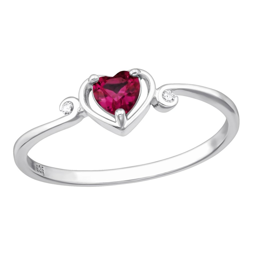 Stříbrný prsten granátové Srdce se zirkony (CZ)