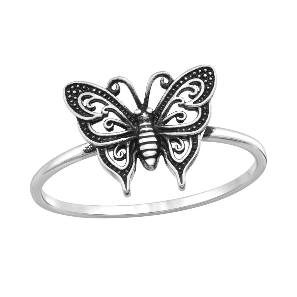 Stříbrný prsten s motivem motýla je krásným a romantickým doplňkem pro každou ženu. Vyrobený ze stříbra s oxidací a E-coat povrchovou úpravou, zajišťuje odolnost a elegantní vzhled. Prsten má rozměry 12,2 × 10 mm, což mu dodává jemnost a detail. Tento kousek se skvěle hodí pro každodenní nošení i speciální příležitosti a může být nádherným dárkem pro milovníky přírody a krásných designů.
