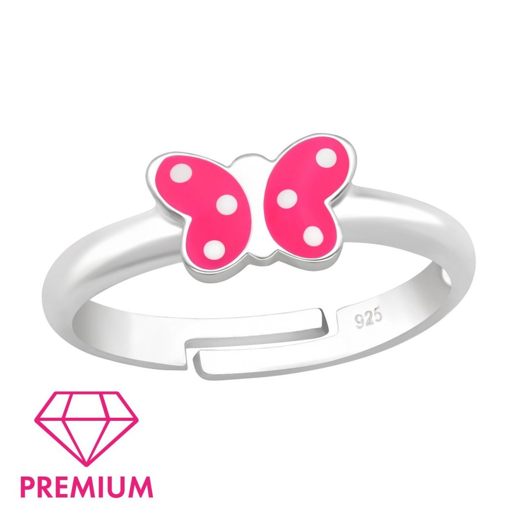 Dětský stříbrný prstýnek Motýlek s růžovými křídly – hravý doplněk pro malé princezny