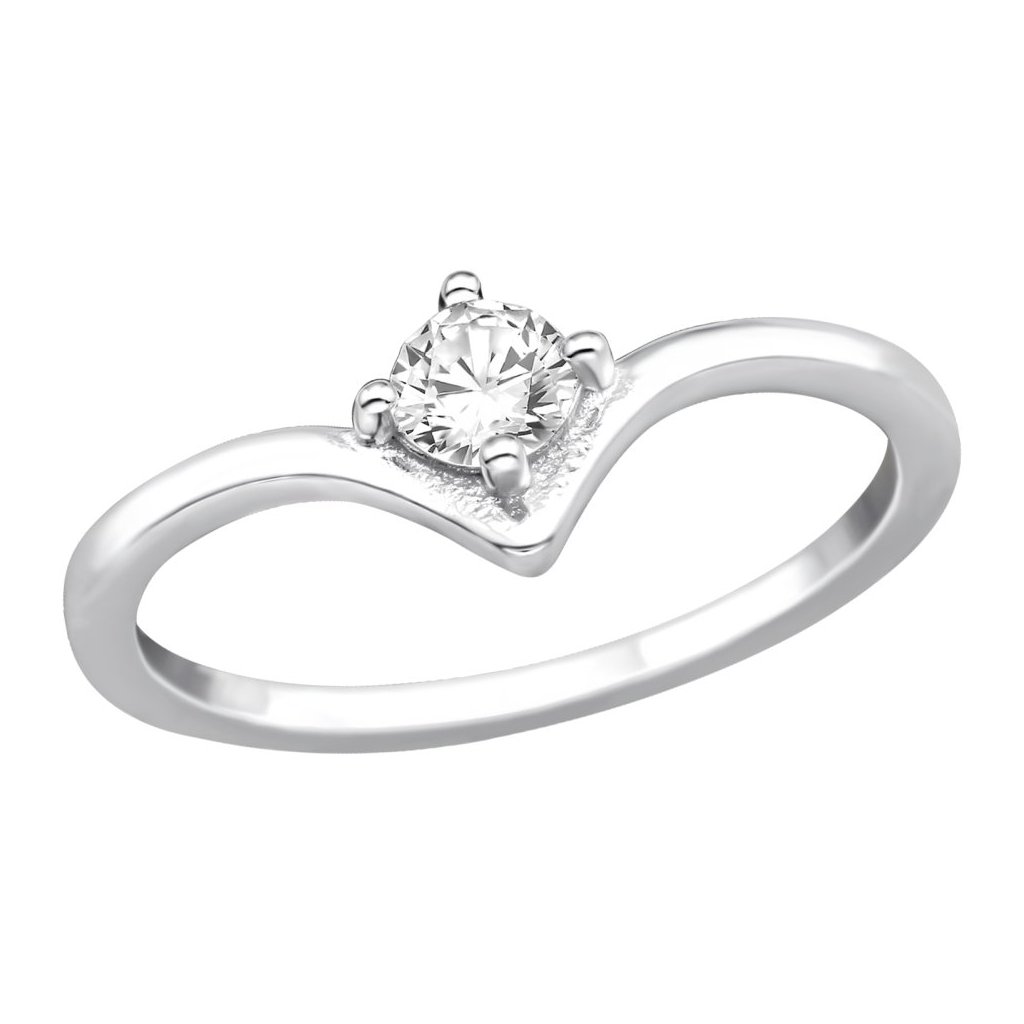 Stříbrný prsten tvaru V se zirkonem (CZ)