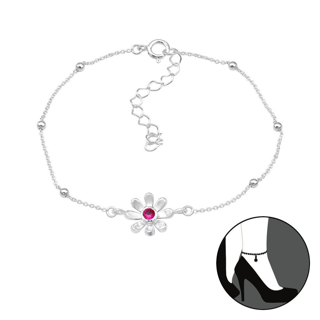 Stříbrný řetízek na nohu Květina se zirkony (CZ)