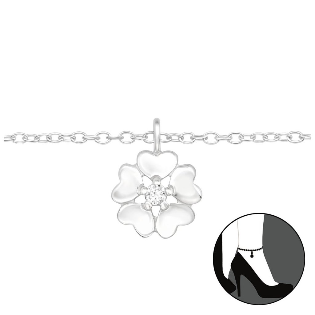 Stříbrný řetízek na nohu Květinové srdce se zirkony (CZ)
