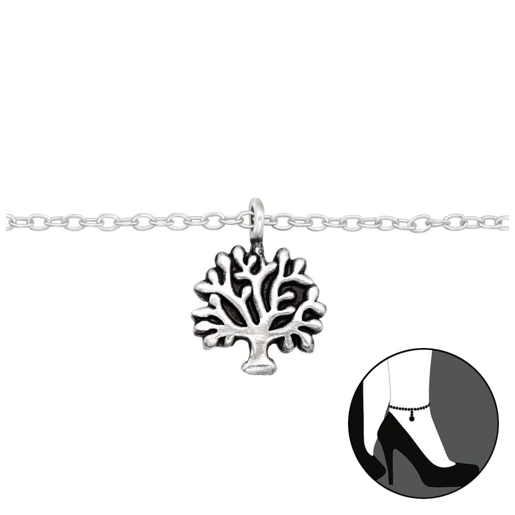 Stříbrný řetízek na nohu Strom života