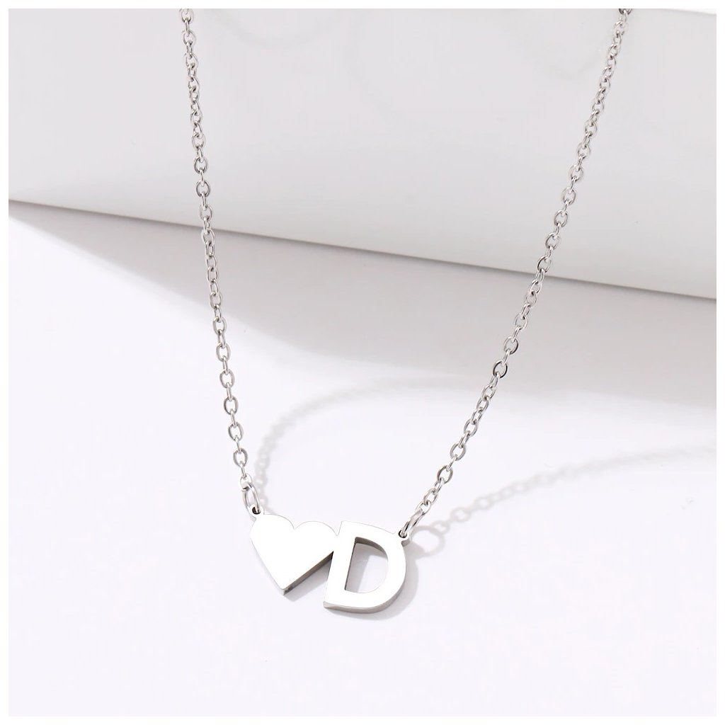 Řetízek s přívěskem - srdce a písmeno D, stříbrná ocel