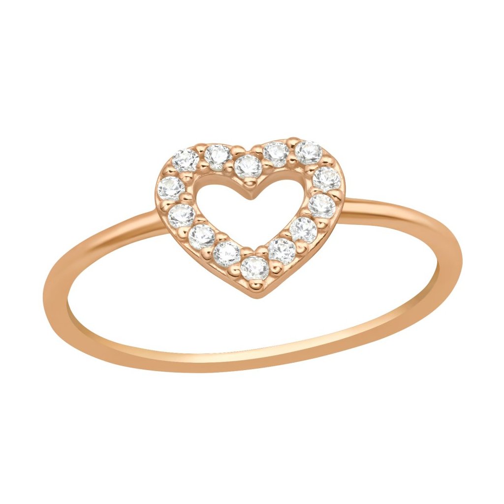 Stříbrný rosé prsten Srdce se zirkony (CZ)