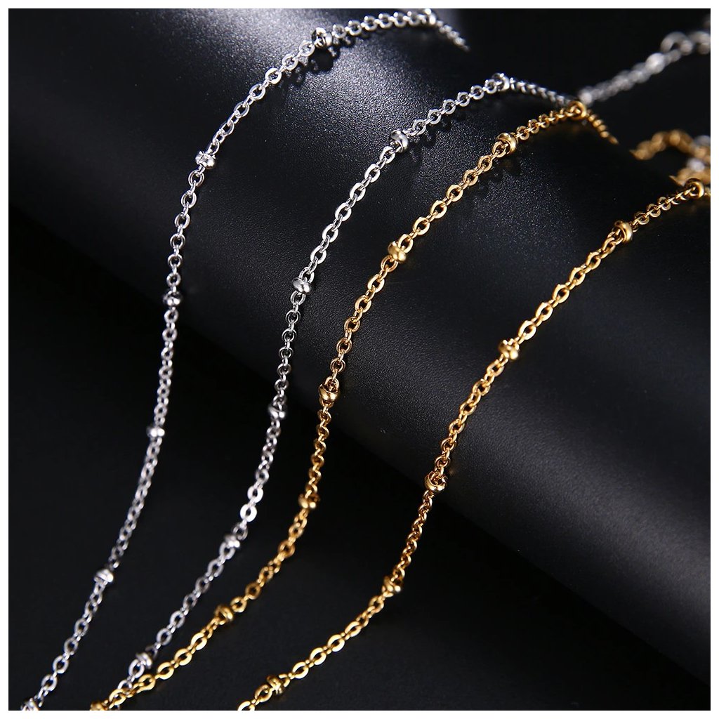 Tento univerzální řetízek s malými kuličkami je vyroben z nerezové chirurgické oceli (netmavne, ani neztrácí barvu).