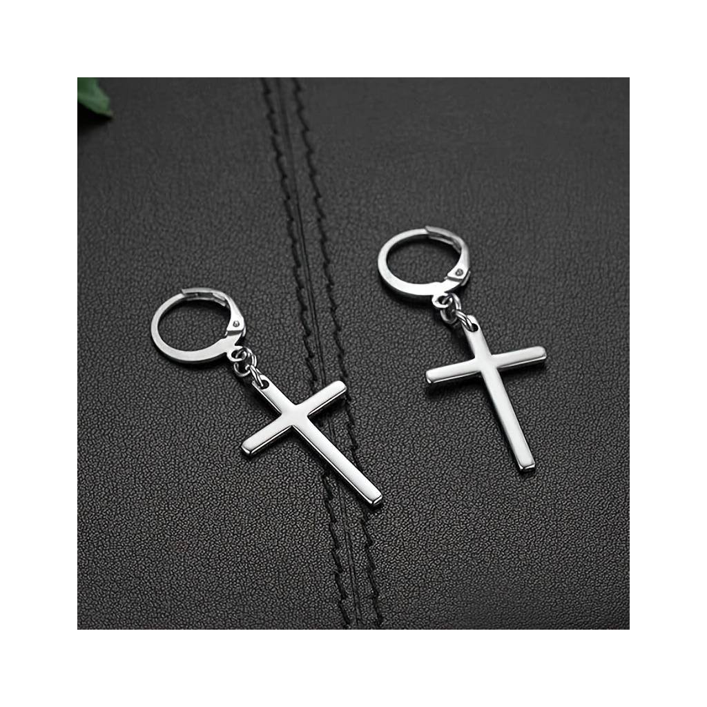 Visací náušnice na patent - křížek Terelle, stříbrná ocel